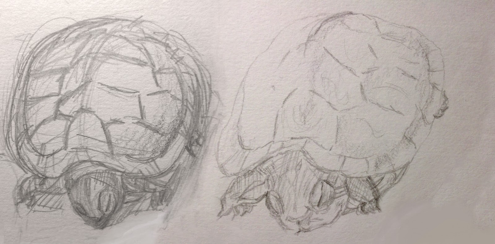 I was babysitting a red-eared slider turtle on new year's. I find "Thomas the Turtle" adorable! I sketched him as he slept.