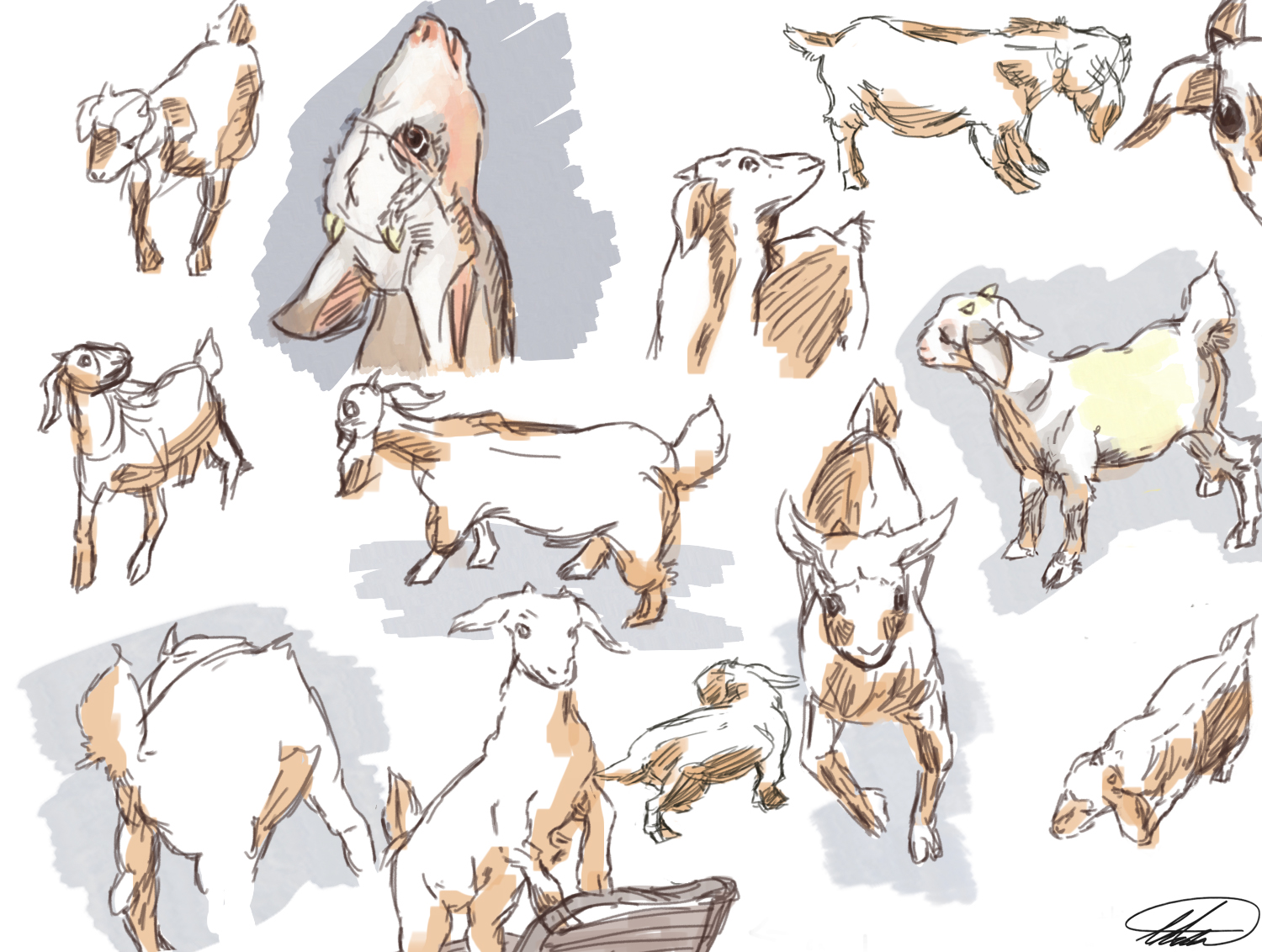 A friend of mine had a pet goat named Pepito for awhile. I sketched Pepito out first and then retraced the drawings on photoshop and added a little bit of color. I wished I sketched out how Pepito acted more like a dog than a goat (though I'm not sure what goats are supposed to act like but the idea of goats chewing clothes comes to mind).