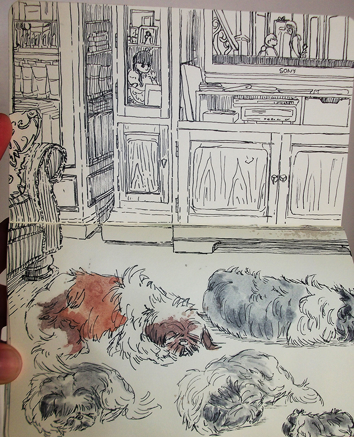 Here is Jasper! He was slept in different positions and whenever he was in the same pose, I continued drawing the background