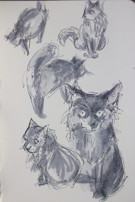 These are sketches of the neighbor's cat I drew in my pocket sketch book.