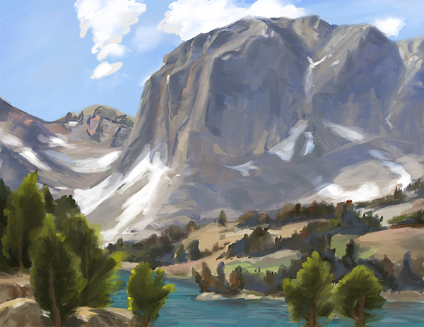 My color theory homework assignment. It's based on California Impressionism and I had to repaint the original painting into a digital version of it. Took me forever but it was worth it.