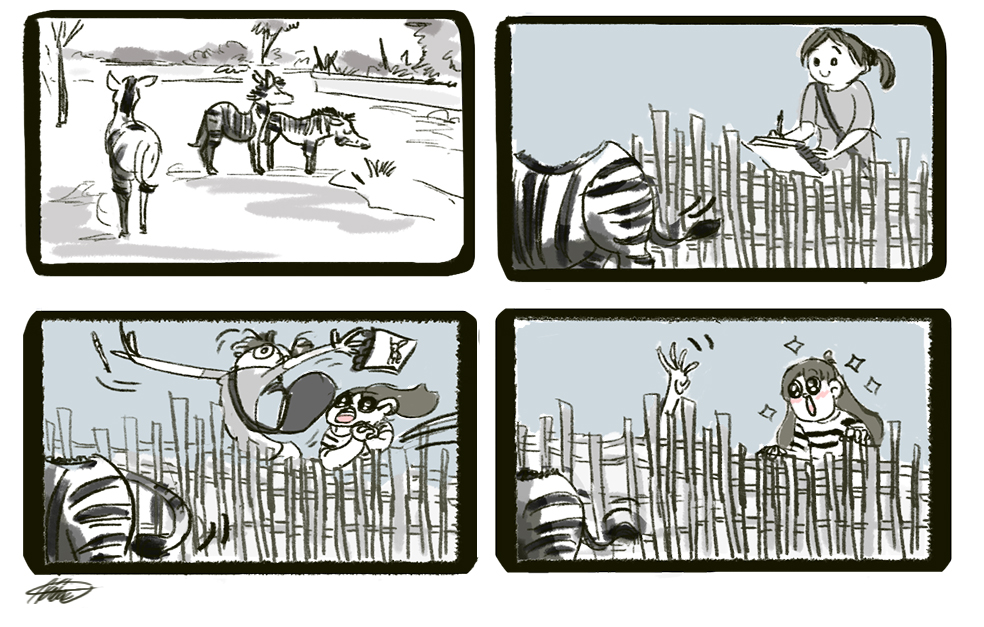 I went to the L.A. Zoo on Thursday. I did a few sketches of the animals there and I decided to color the ones I liked. I only had a chance to draw the zebra once since there were a lot of excited kids everywhere.
